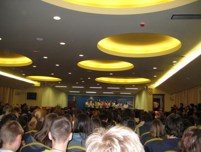 U nedjelju, 6.travnja, ujutro u 8h krenuli smo katamaranom za Split. Tamo smo bili do 12h dok nisu došli Dubrovčani i Metkovčani po nas. Do Primoštena smo se vozili 1h. Noćili smo u hotelu Zora*** i bilo nam je super. Kad smo došli išli smo u obilazak Primoštena. Navečer u 19h bilo je otvaranje Državnog natjecanja, a nakon toga večera.Ujutro smo nakon doručka krenuli autobusom u školu, gdje smo rješavali zadatke od 9 do 13h. Popodne je organiziran izlet u Trogir. Jako su nam se svidjeli i Trogir i Primošten. Vrijeme je bilo lijepo, sunčano, ali je jako puhalo.U utorak smo još malo obilazili Primošten, a navečer je bila dodjela nagrada, proglašenje pobjednika i zatvaranje Državnog natjecanja. Nakon večere imali smo organiziranu zabavu i to karaoke za mlade, a Matem athica party za profesore, gdje su im pjevali Berekini. Ujutro smo nakon doručka krenuli prema Splitu. Vratili smo se s katamaranom u Vela Luku i onda autom do našeg Blata - kod kuće je ipak najbolje! |