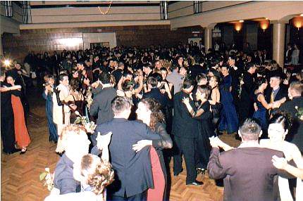 U prvom redu možete vidjet ravnatelja s našom Danijelom. Većina maturanata elegantno se smjestila u sredinu dvorane dok su nekolicina hrabrih kružili okolo. Da, prvi ples je započeo - i vrlo brzo završio... P.S. Ako se netko uspije prepoznati, svaka mu čast.